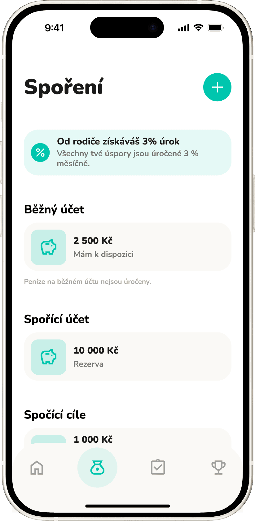 Rodič může nastavit procento, kterým se úročí dítěti zůstatek. Úrok se pak připisuje z účtu rodiče.